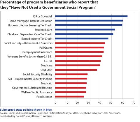 OK, maybe not all of us. But a lot of us. Really a lot. Cornell political scientist Suzanne Mettler has an article in the Washington Monthly about what she calls the “submerged state,” or the massive amounts of money at play in various tax deductions (eg. the mortgage interest deduction) that benefit particular populations.